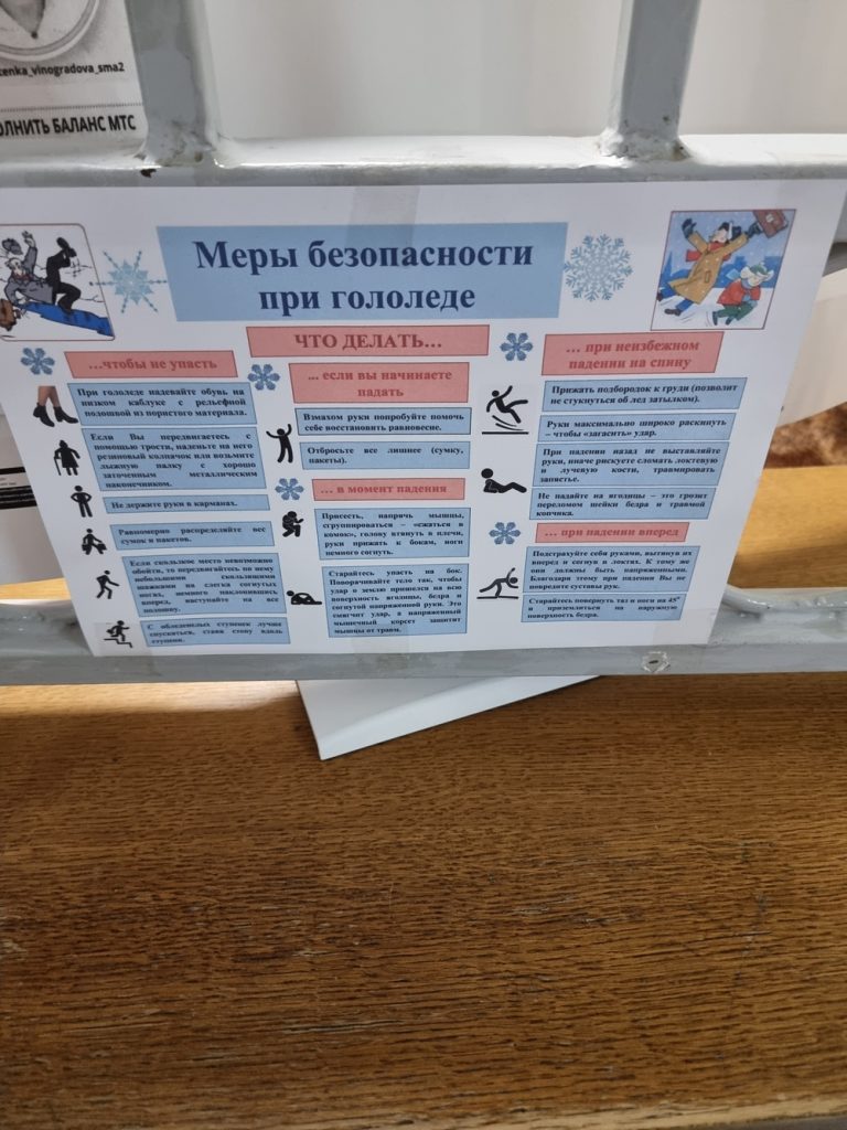 Особое внимание было уделено проведению внепланового инструктажа по охране труда, а также была проведена беседа по мерам безопасности в быту. С учётом текущего времени года отдельный акцент сделан на правилах безопасности в зимний период: как избежать падений на скользких поверхностях, правильно расчищать снег, соблюдать осторожность при гололёде и использовать средства индивидуальной защиты.